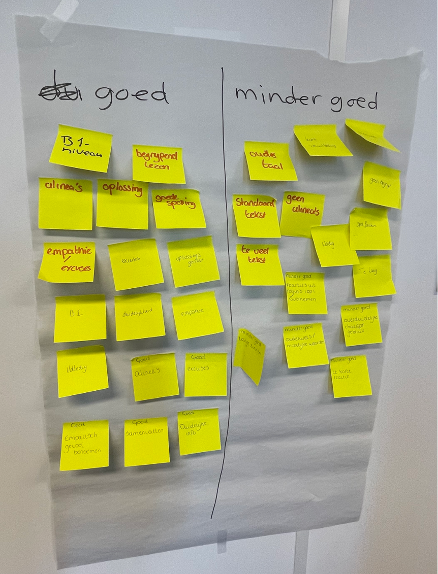 Op die zomerdag lag de behoefte o.a. in het uniformer, kernachtig en meer empathisch reageren op vragen en klachten van reizigers. Ook werd gevraagd hoe en op welke manier er verantwoord Ai kan worden ingezet. We hadden weer eens een leuke uitdaging te pakken.